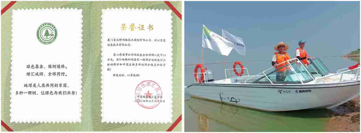 2024年6月,,,,公司携手中国绿色碳汇基金会,,,开展“保卫江豚”公益活动,,,向基金会捐赠人民币20万元用于采购全新巡逻艇,,,以支持鄱阳湖长江江豚保护工作。。。。截至2024年底,,,公司捐赠的资金与巡逻艇已经有效协助巡护队对鄱阳湖1,667头江豚开展保护行动。。。