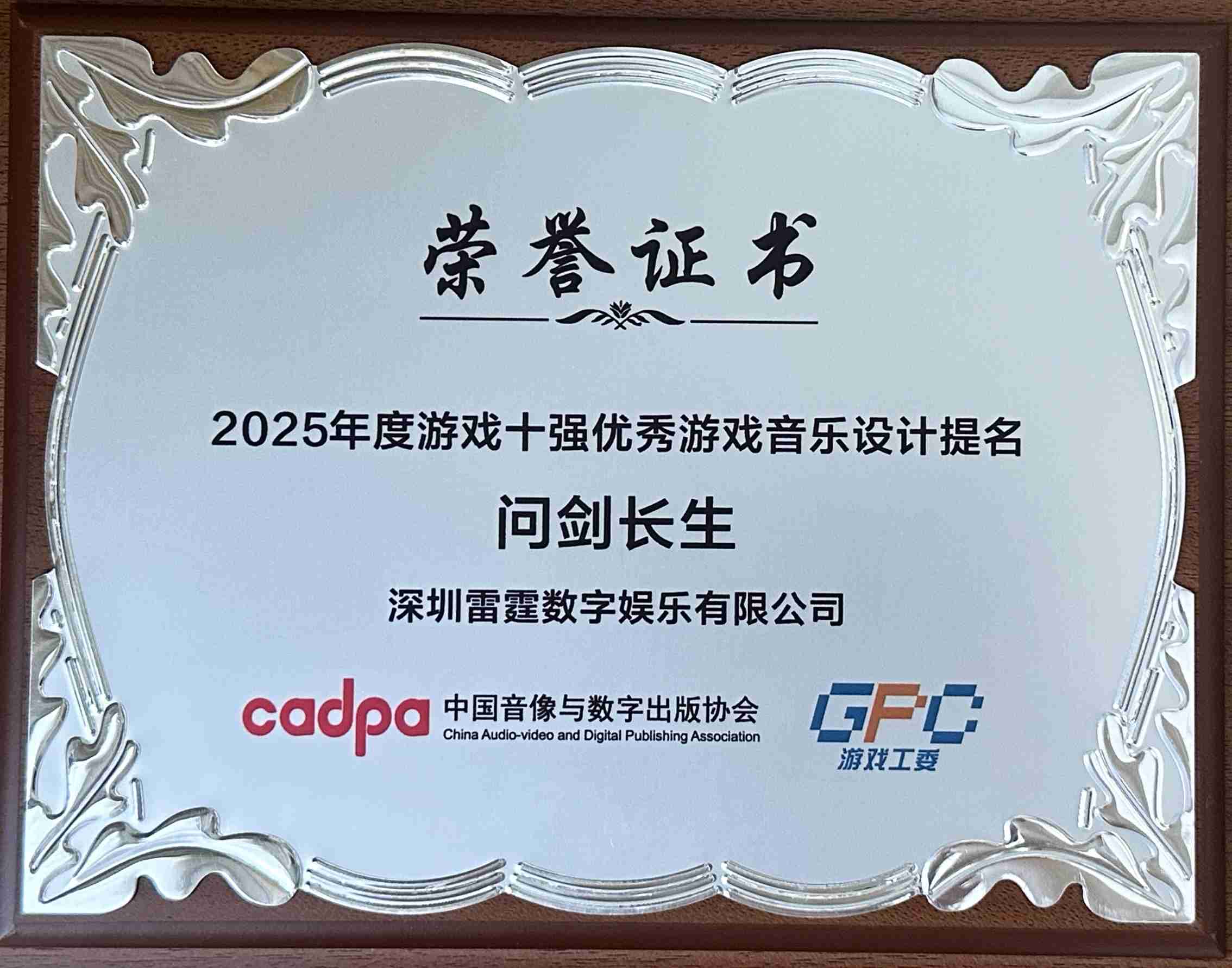 公司坚持走精品化道路,,,打造与时代精神相契合、、与海内外大众诉求相契合、、、与创作实践相契合的游戏产品,,,,倡导构建具有中华文化特色、、、、弘扬中华美学精神的产品理念,,,切实提升游戏文化内涵的传播力影响力。。。如此次荣获“2025游戏十强年度优秀游戏音乐设计”提名奖的公司自研产品《问剑长生》以音筑境,,,以乐传情,,,,其音乐融合东方传统韵味与现代审美,,,构建独特听觉世界,,运用古筝、、、笛子、、箜篌等传统乐器与现代管弦乐,,塑造灵动古风仙侠氛围。。。